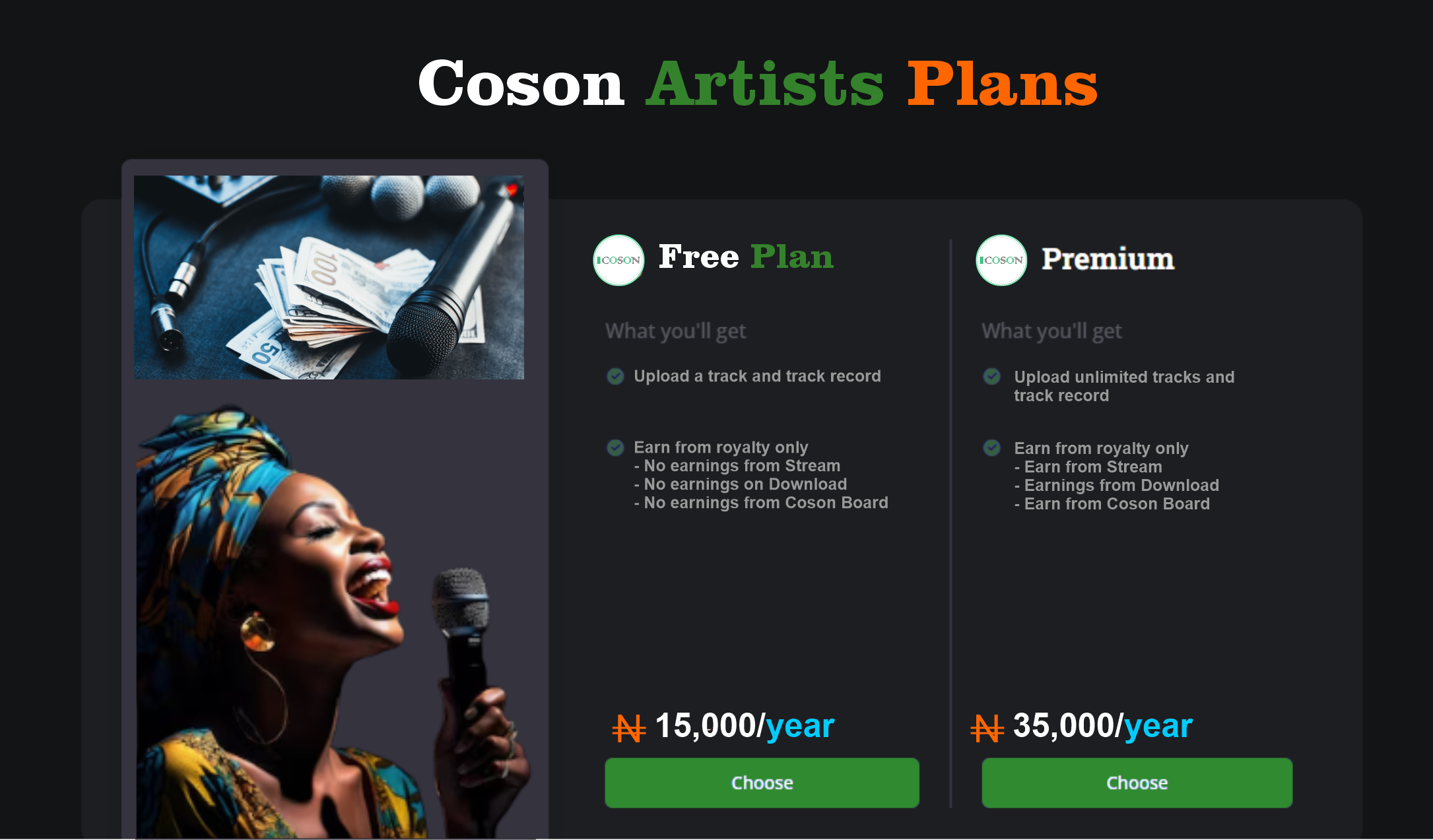 COSON offers monetization systems, and earnings for artists